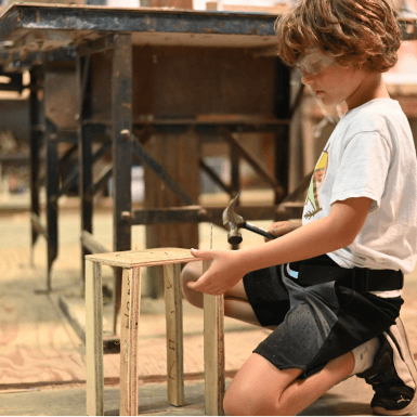 Woodworking is another great creative pursuit for campers. Younger campers get to experience what it feels like to build with simpler materials like popsicle sticks. Older campers have supervised instruction with equipment including hammers, levels, woodburners and more for building projects including shelves and tables.